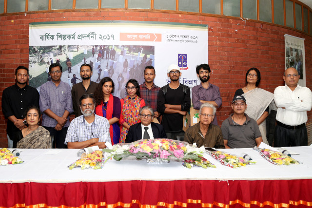 ঢাকা বিশ্ববিদ্যালয় ভাস্কর্য বিভাগের উদ্যোগে ‘বার্ষিক শিল্পকর্ম প্রদর্শনী-২০১৭’-এর উদ্বোধনী অনুষ্ঠান আজ ১ নভেম্বর ২০১৭ বুধবার বিশ্ববিদ্যালয়ের চারুকলা অনুষদের জয়নুল গ্যালারীতে অনুষ্ঠিত হয়েছে। বিশ্ববিদ্যালয়ের উপাচার্য অধ্যাপক ড. মো. আখতারুজ্জামান এতে প্রধান অতিথি হিসেবে উপস্থিত থেকে প্রদর্শনীর উদ্বোধন করেন। এ সময় চারুকলা অনুষদের ডিন অধ্যাপক নিসার হোসেন, ভাস্কর্য বিভাগের চেয়ারম্যান এ এ এম কাওসার হাসানসহ বিভাগের সিনিয়র শিক্ষক ও শিক্ষার্থীবৃন্দ উপস্থিত ছিলেন। প্রদর্শনী চলবে আগামী ৭ নভেম্বর ২০১৭ মঙ্গলবার পর্যন্ত।